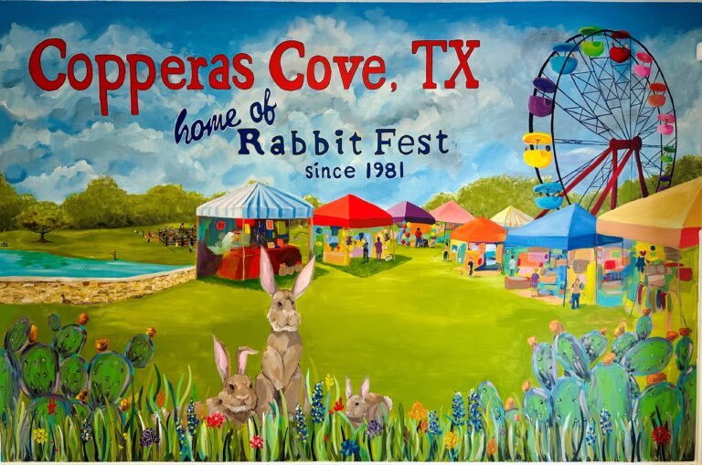 The 5 Hills Mural Tour in Copperas Cove invites you to explore the vibrant history and culture of our community through stunning works of art. Over the years, local artists have crafted beautiful murals that capture the essence of Copperas Cove, from its early days as a cow town to beloved traditions like Rabbit Fest. Each mural tells a unique story, celebrating the spirit of the city and its rich heritage. The tour also features a new mural commemorating the 2024 Total Solar Eclipse, a once-in-a-lifetime event that will forever be a part of Copperas Cove’s legacy. Come take a walk through time and discover the artistic heartbeat of our town.